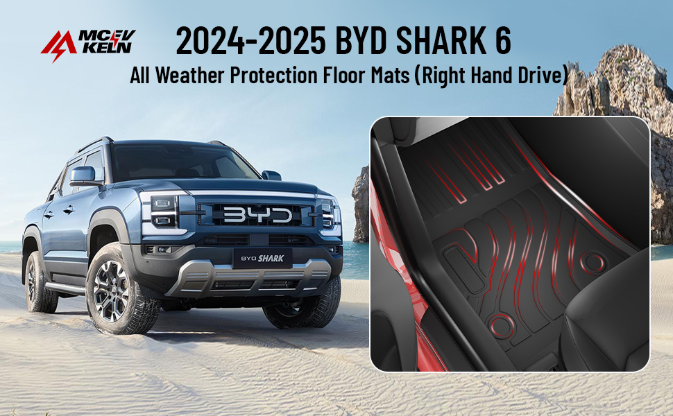 Compatible with BYD Shark models (2024-2025) with right-hand drive, 4-piece floor mat set and boot liner offer a precise fit