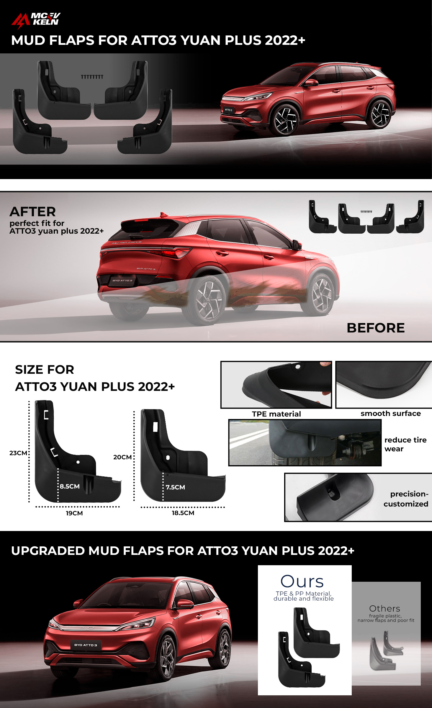 4PCS Mud Flaps Splash Guards for for Atto3 YUAN PLUS 2022+ Mudguard Fender
