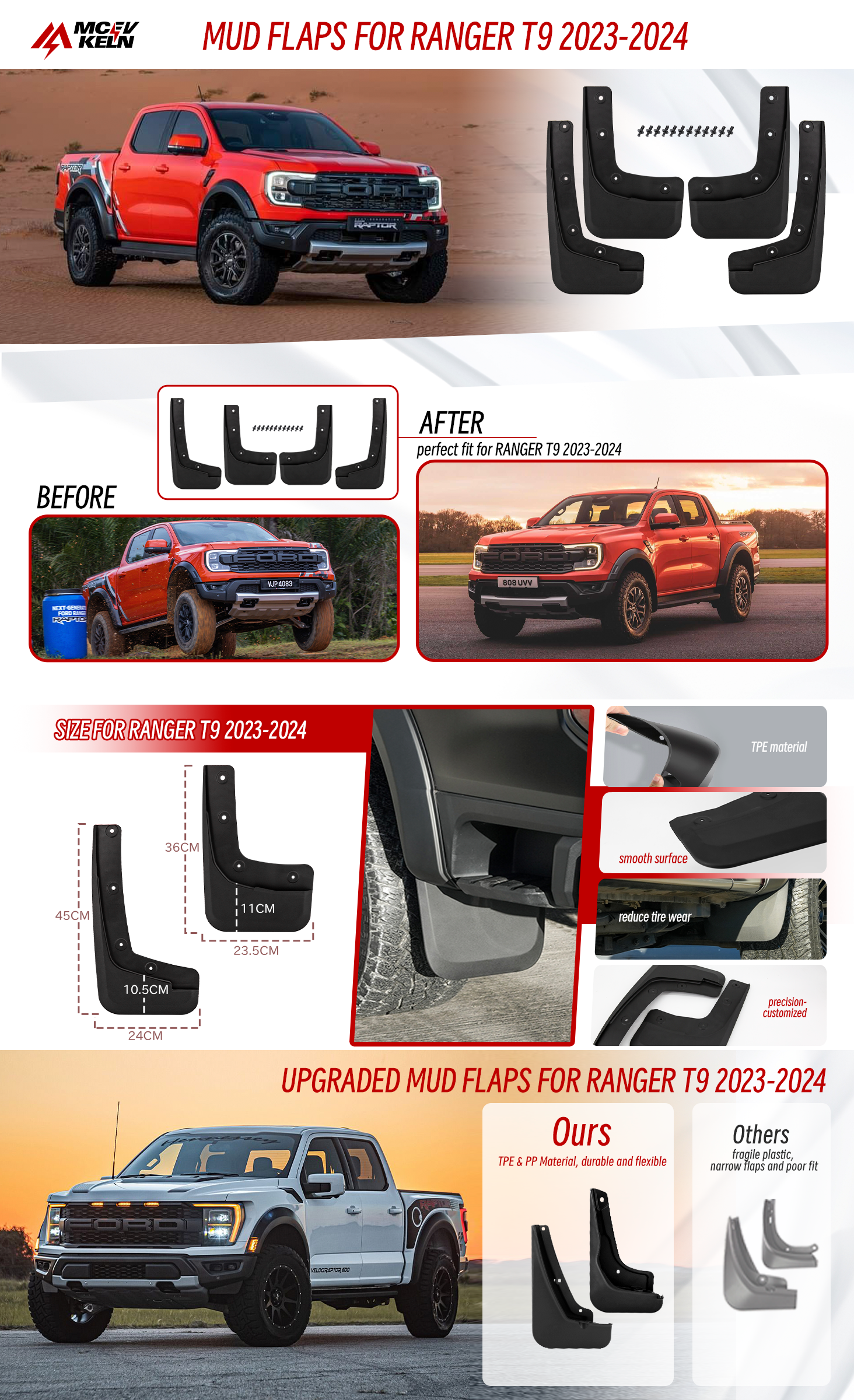 4PCS Mud Flaps Splash Guards for for Ford Ranger T9 2023 Next Gen Mudguard Fender