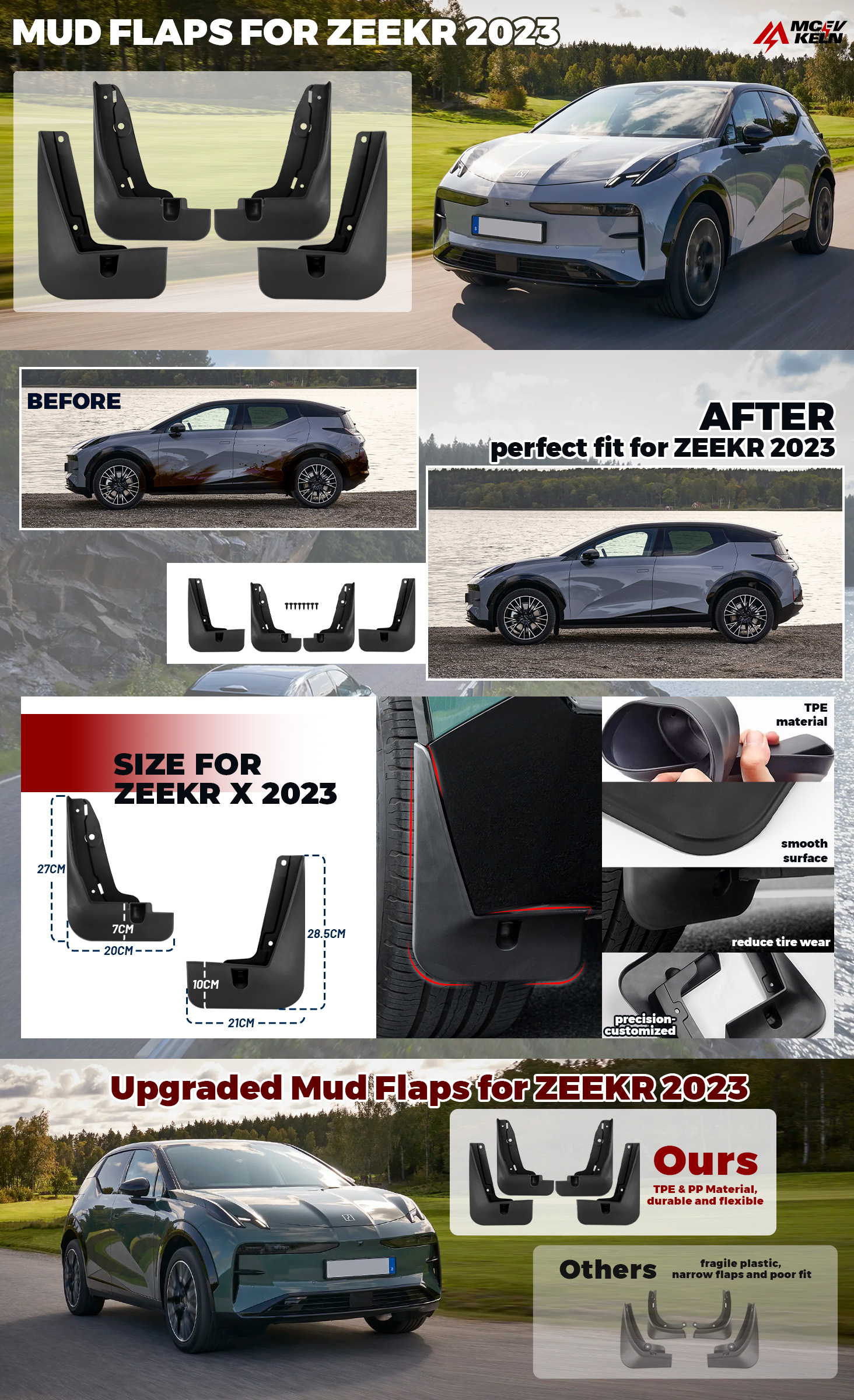 4PCS Mud Flaps Splash Guards for for ZEEKR X 2023 Mudguard Fender