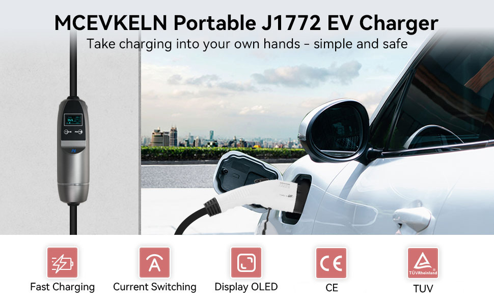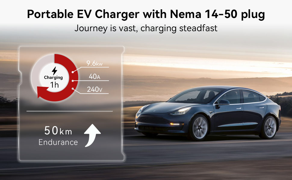 Portable EV Charger EV Charging Cable 6-32A/6-40A Level 2 NEMA 14-50 Plug 25FT/7.62M