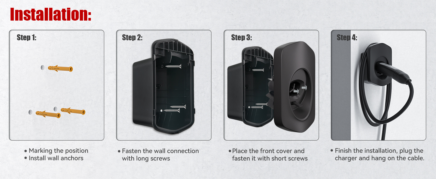 NACS Tesla Charging Cable Dock, Black/Silver/White Option