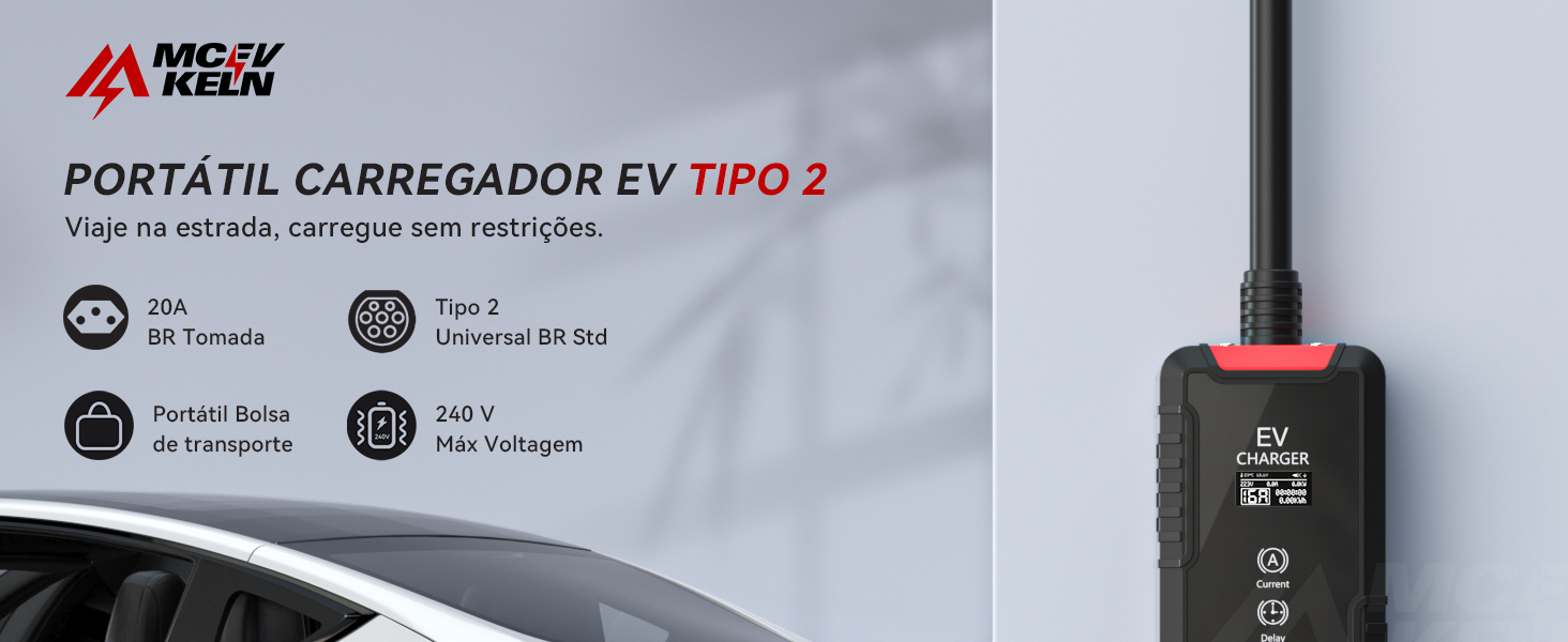Portable Type 2 EV Charger 6A-16A with NBR14136 20A plug, IP65 Rated, 5M/10M Cable Optional With Carry Bag