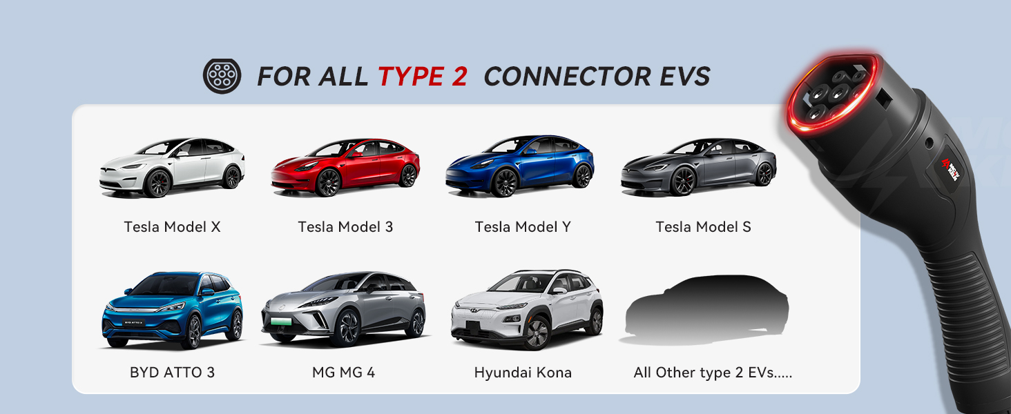 Compatible with most BEVs/PHEVs with Type 2 or CCS2 connectors